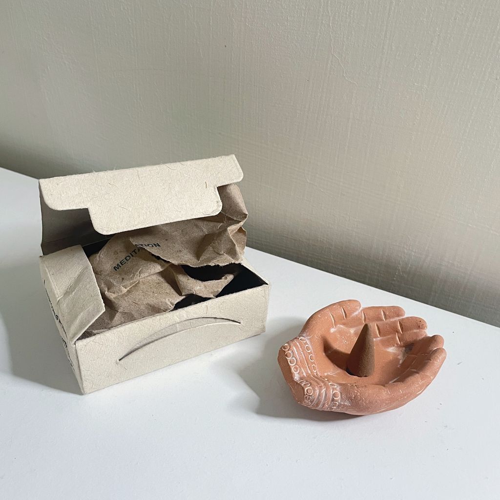 【4:20 sélect】手工紅陶手掌雙孔線香插 塔香盤 薰香盤 薰香碟 聖木座 聖木盤